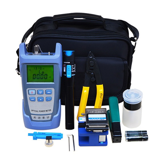 Medidor de potencia óptica Cortador de fibra Localizador visual de fallas Peladora recta fibra óptica drop Fibra óptica stripper Botella de alcohol Marcador de corte de fibra Papel libre de polvo Adaptador FC y SC para medidor de potencia óptica Estuche de transporte